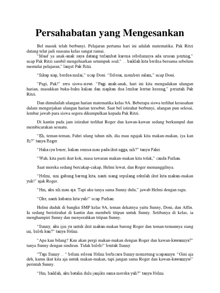 Jujur saja saya memang belum bisa membuat cerpen dengan baik. 14 June 2021 Hari berganti hari aku semakin merasa nyaman saat berada di dekat Ray. Cerpen tentang persahabatan saat SD diatas memang terkesan alay tetapi memang kami sengaja menulisnya.
